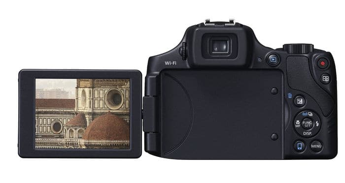 La Canon PowerShot SX60 HS es la cámara con el zoom más grande de la empresa, nada más y nada menos que 65X, con una lente 21-1365mm equivalente (F3.4-6.5). La lente de la SX60 dispone de un excelente estabilizador de imagen. Tiene un cuerpo estilo DSLR con una pantalla LCD totalmente articulada y un visor electrónico.