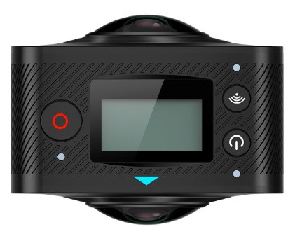 La cámara es realmente pequeña (6x5x3.5cm) y ligera (104 gramos) y al disponer de 2 lentes es capaz de grabar vídeos para realidad virtual. También tiene una pequeña pantalla donde vamos a poder controlar las distintas funciones de la cámara junto con el botón de encendido, conectividad WIFI y el botón de inicio de grabación.