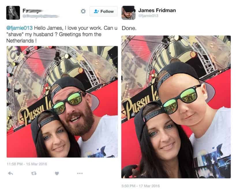 Fridman sus trabajos de Photoshop en Twitter, Instagram, y Facebook. Hay que seguirle en las redes sociales.